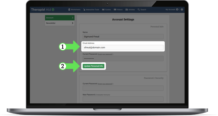 1. When logged in, press “My Account” and then “Account Settings” in the top right corner of Therapist Aid.